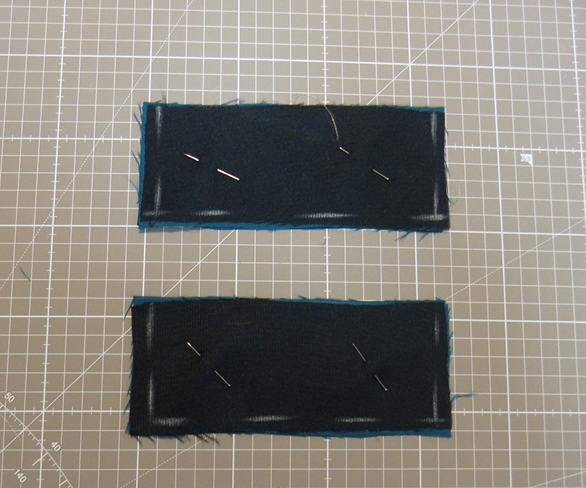 Poner alfileres para sujetar las dos costuras de unión exterior cuello e interior cuello.