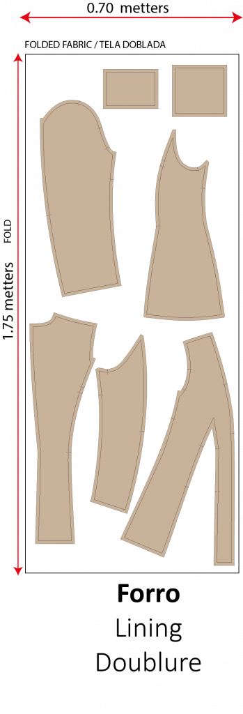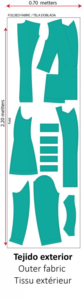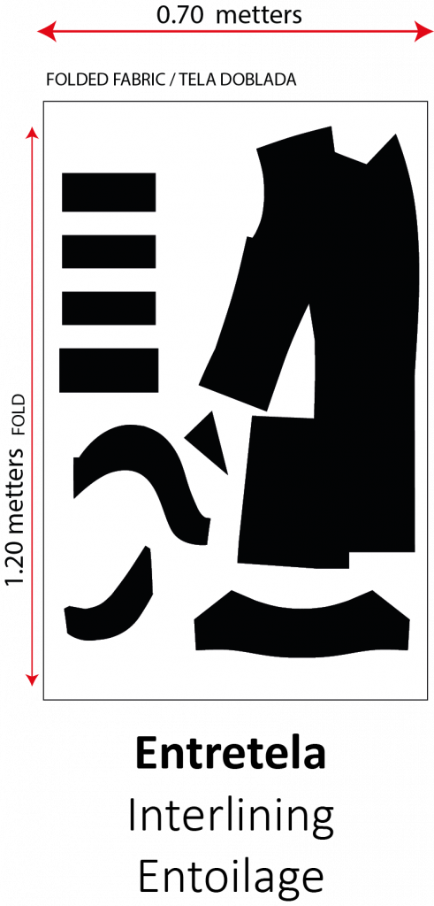 Algunas de las piezas de exterior, también se cortan en entretela, está escrito en los patrones.