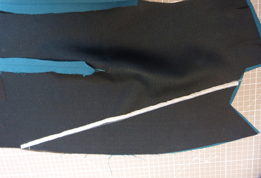 Repasar con un hilván flojo o hilos flojos las líneas que se han dibujado. Todas se hacen con el mismo color de hilo de hilvanar. El otro color de hilo de hilvanar se reserva para realizar los hilvanes de sujeción.