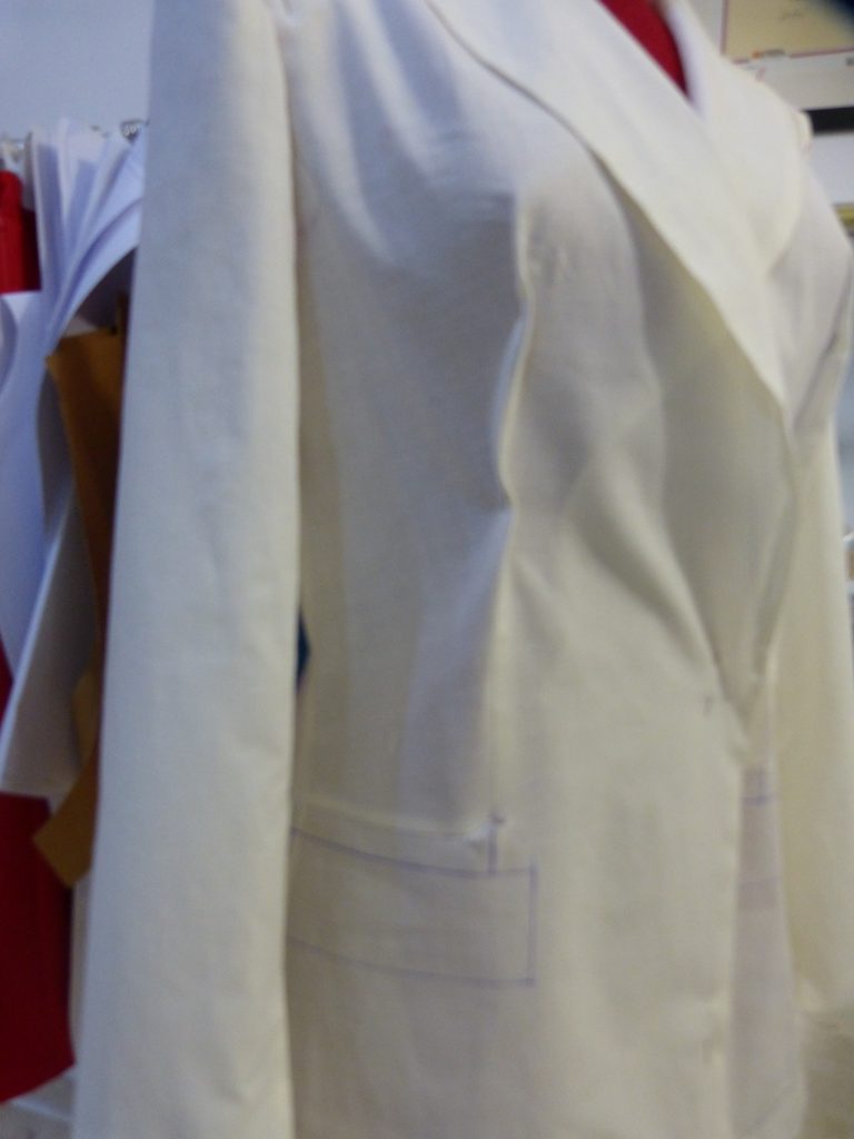 Colocar bien asentado el forro de la chaqueta con la chaqueta y dibujar con bolígrafo borrable, una línea en el forro de la chaqueta, coincidiendo con el de la chaqueta exterior, digamos que la chaqueta sirve de plantilla.