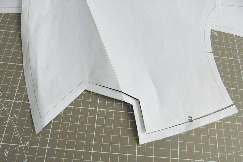 El patrón del delantero ya no tiene margen de costura porque ya se ha recortado en los pasos anteriores.